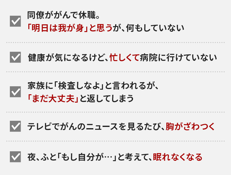 「不安だけど動けない」あなたのためのがんリスクチェックなんです。
